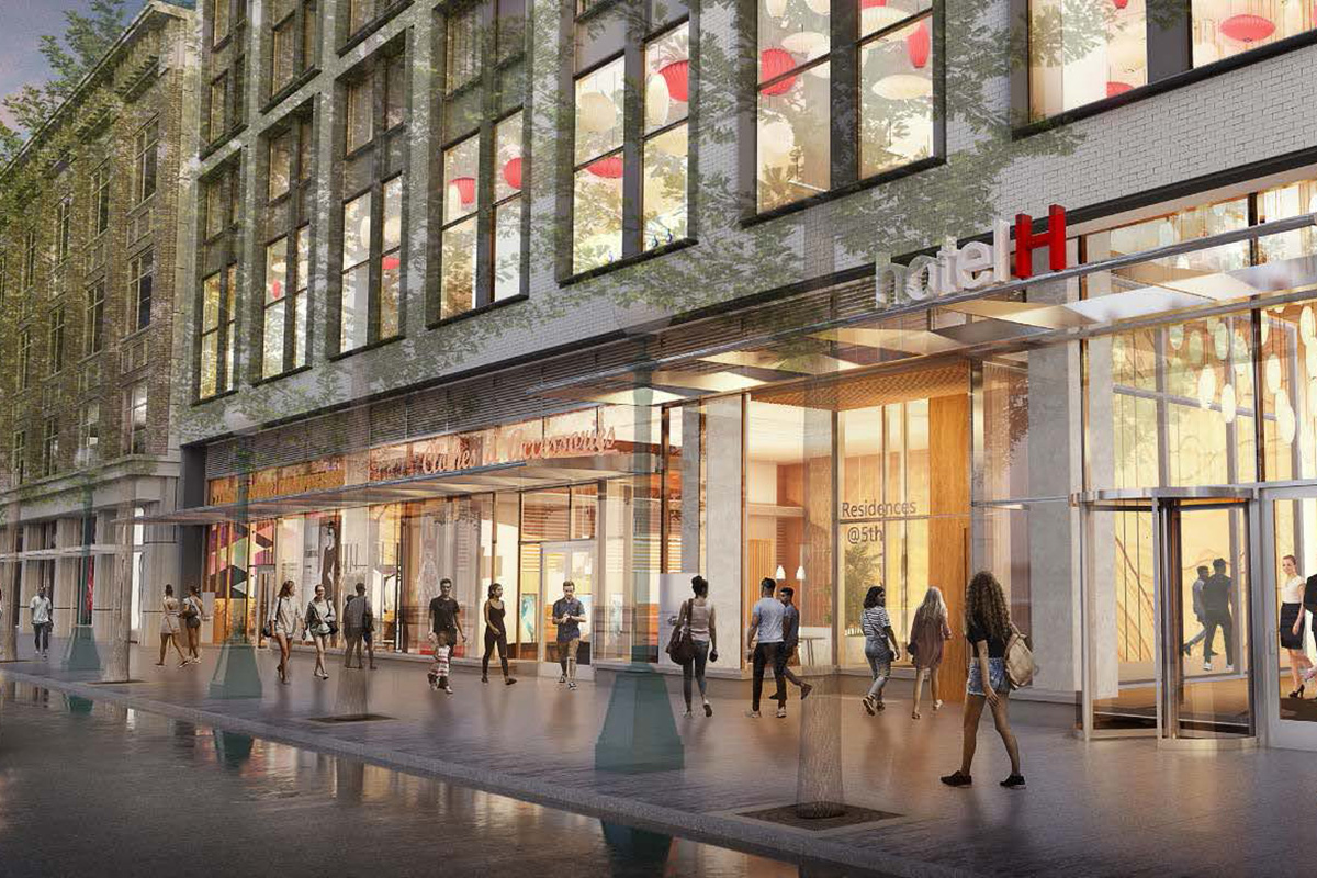 The proposed development at 1520 5th Avenue will be a central and iconic part of downtown Seattle. The 16 story project contains a mix of uses including a 246 room hotel which rises above a street-level facade containing the project's lobbies and retail spaces. Residential units (apartment or condominium) rise above the hotel component of the project.